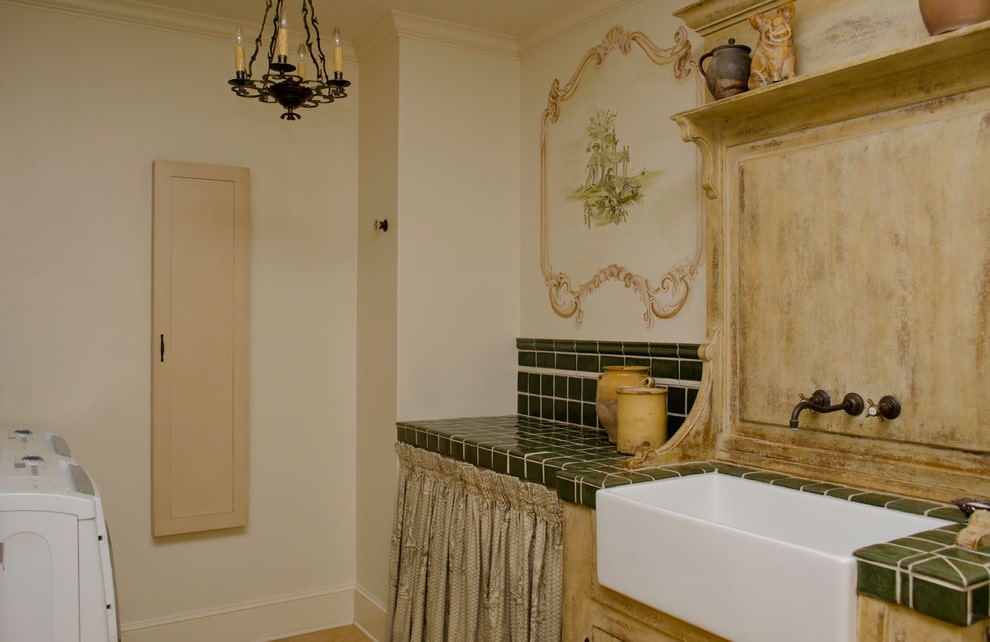 The Provence style can be emphasized with a colored mural with pastel colors or a lavender field. A large image requires a separate wall that will not be cluttered with furniture. The fresco will become the accent of the entire room, so it is important not to overload the interior with additional decorative elements.