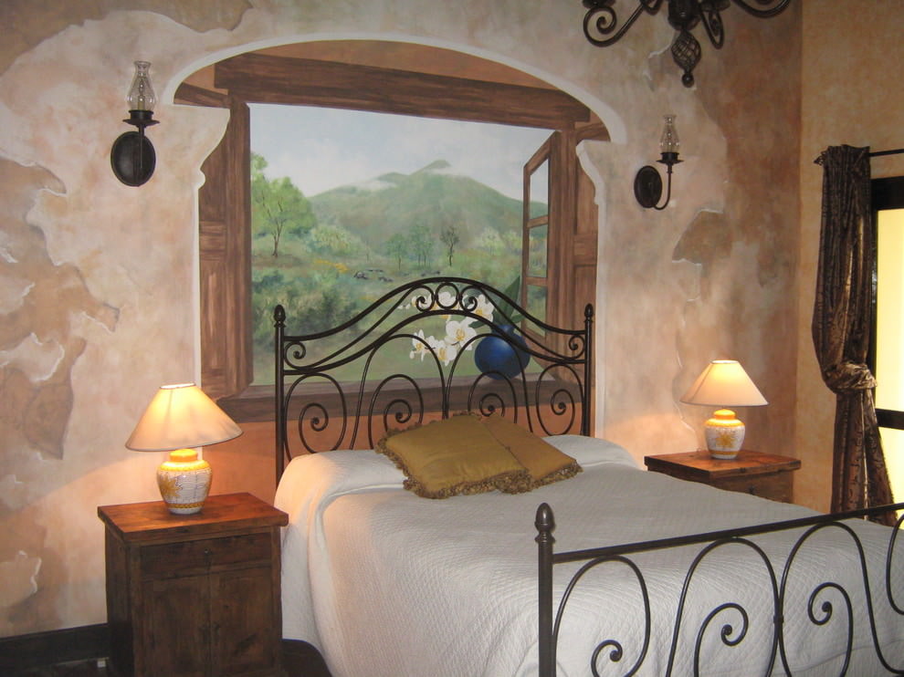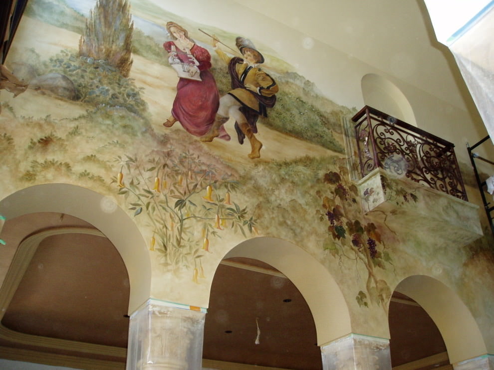 On the picture a fresco that, in combination with arches, creates an imitation of an open balcony. For such an interior, the walls should be neutral in color.