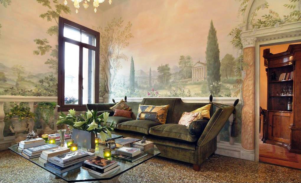 When choosing the size of the fresco and its theme, you need to start from the size of the room, the arrangement of furniture and the style solution.