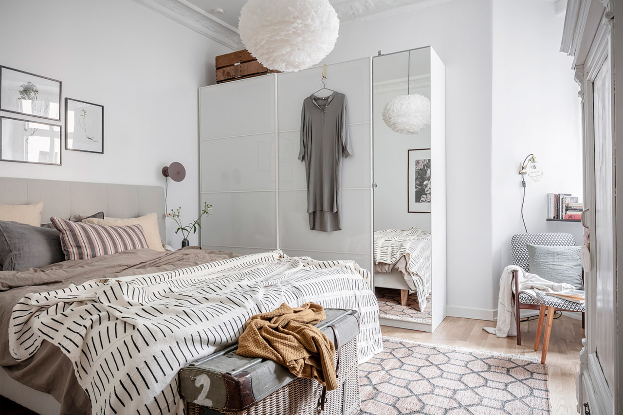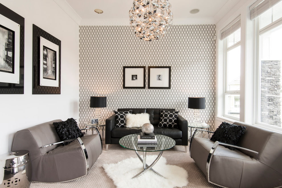 To make the room look more expensive, use a combination of black and white: contrasting geometric prints will never go out of style, this is a timeless solution. Ornaments with smooth lines, repeating circles or squares will allow you to dilute a strict combination.