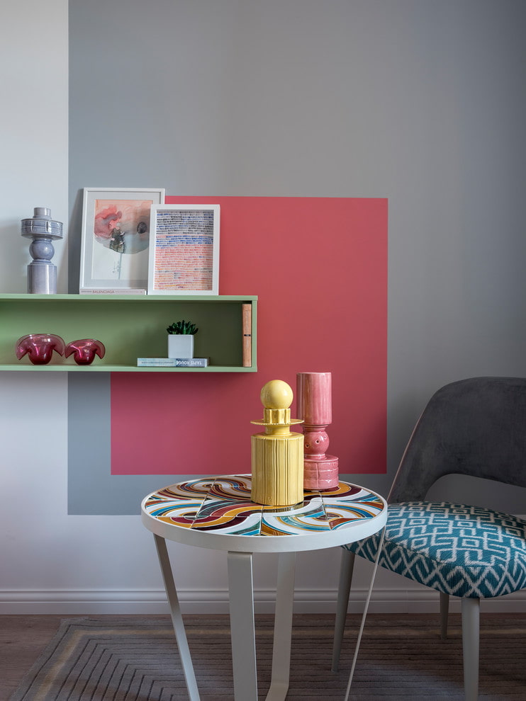 With the help of lines and geometric shapes, you can not only decorate a room, but also change its visual perception. Shrinking squares of complex shades, like the first photo, create a false perspective, expanding a small space.