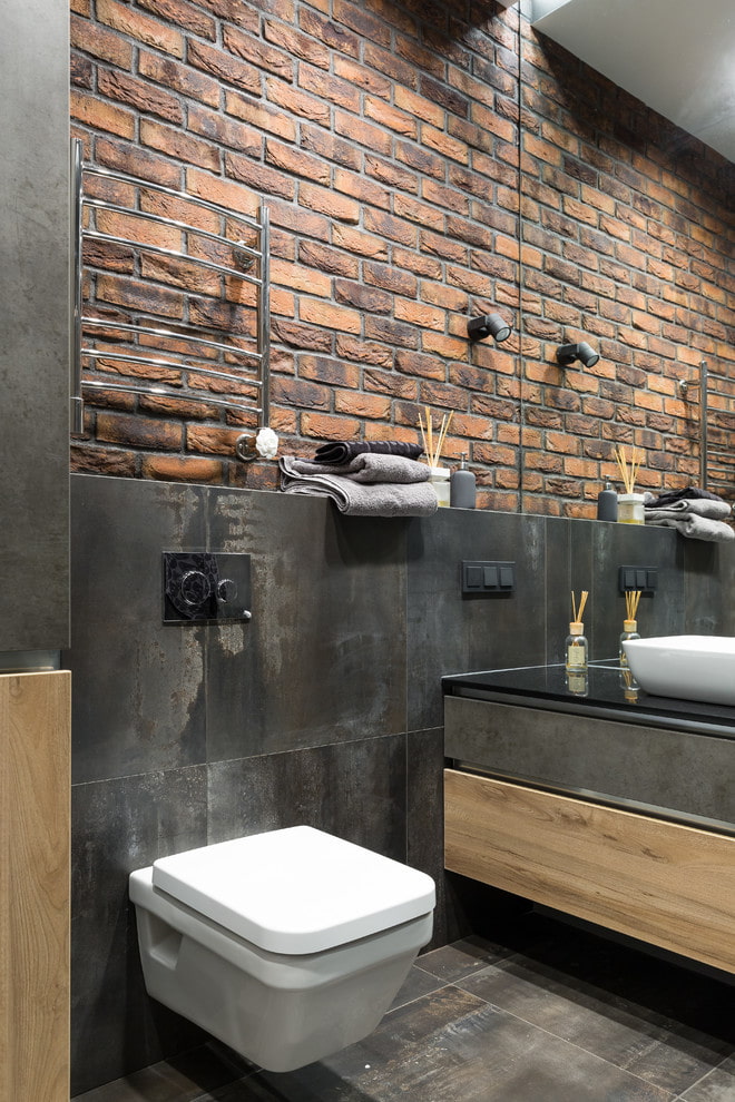 - In the loft style, brick cladding is almost an integral part. Here, products are used for brick with an uneven surface, both in traditional red and in gray, brown, sand or even snow-white color.