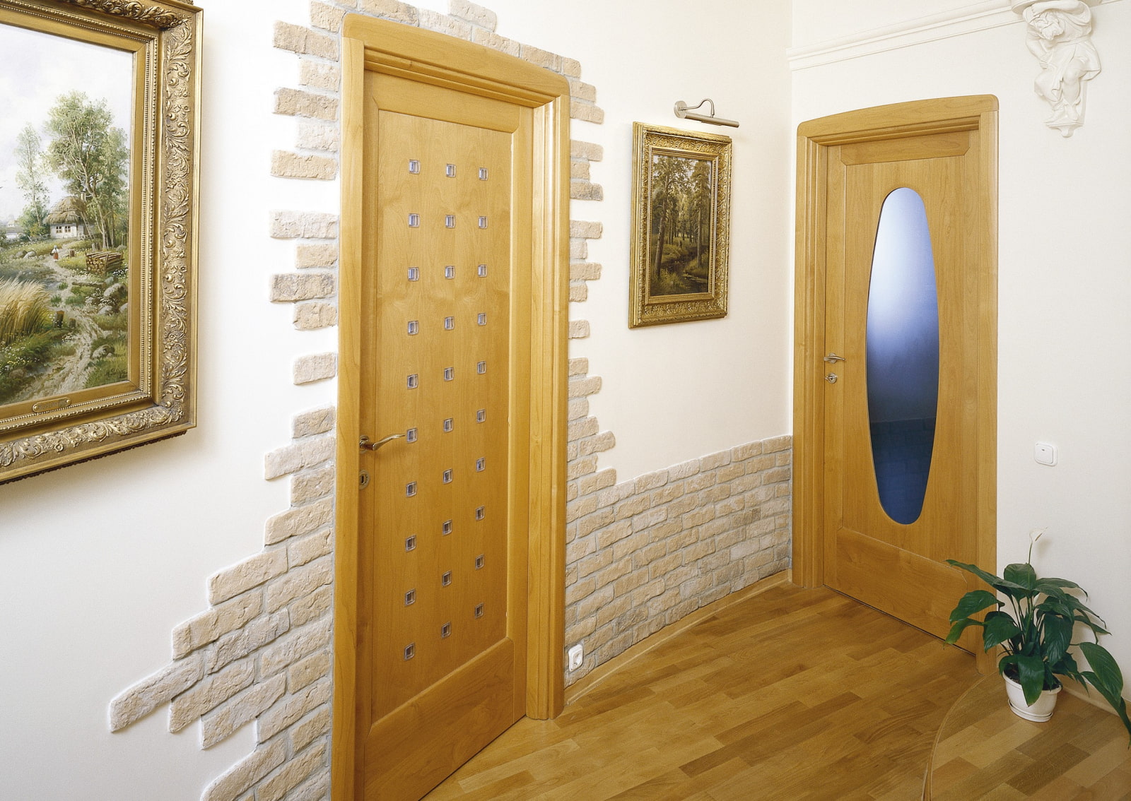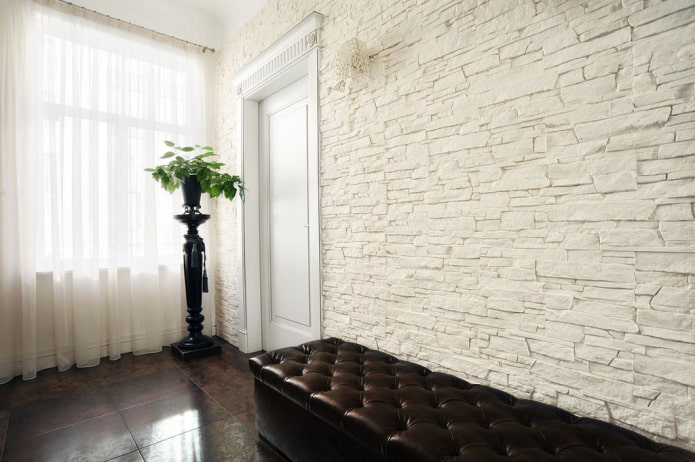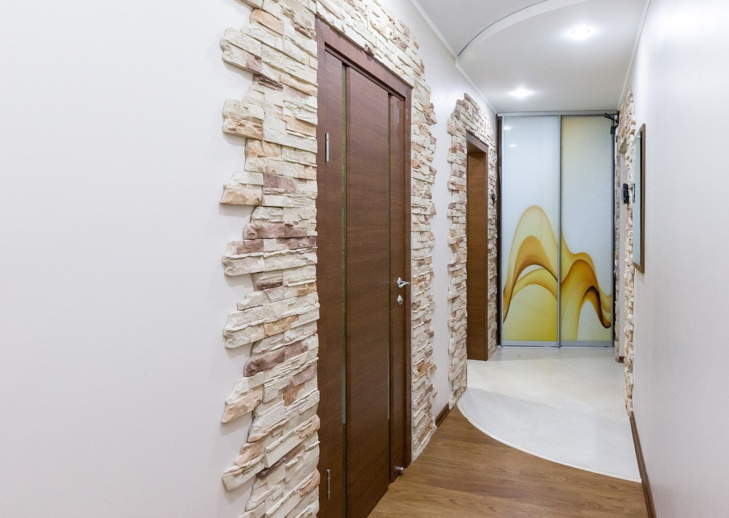 This cladding gives the corridor space a certain volume. In order for its texture not to lose its expressiveness, it is preferable to decorate with material only one plane or create certain accents.