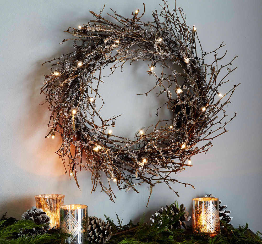 At Christmas, it is customary to decorate the doors of the house with wreaths. Usually they are woven from spruce branches and decorated with various decor, braiding with ribbons. You can make a wreath in the shape of a heart, decorate with a garland - it will be unusual and bright.