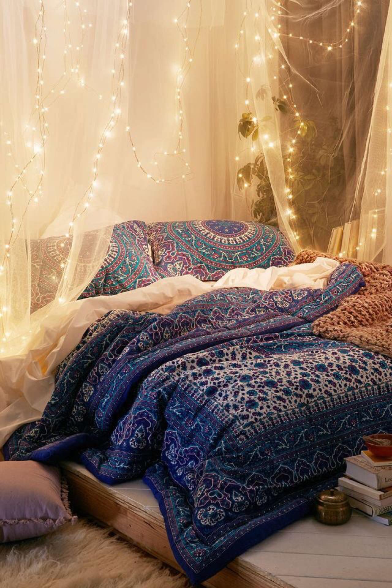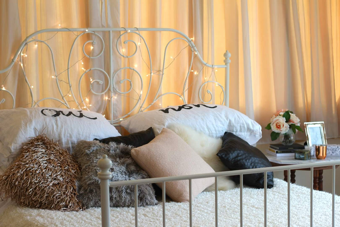 Small bulbs look especially decorative if they are covered with a translucent fabric. So you can decorate the head of the bed or the wall above the sofa. Backlighting with garlands of curtains will give the room a fabulous atmosphere.