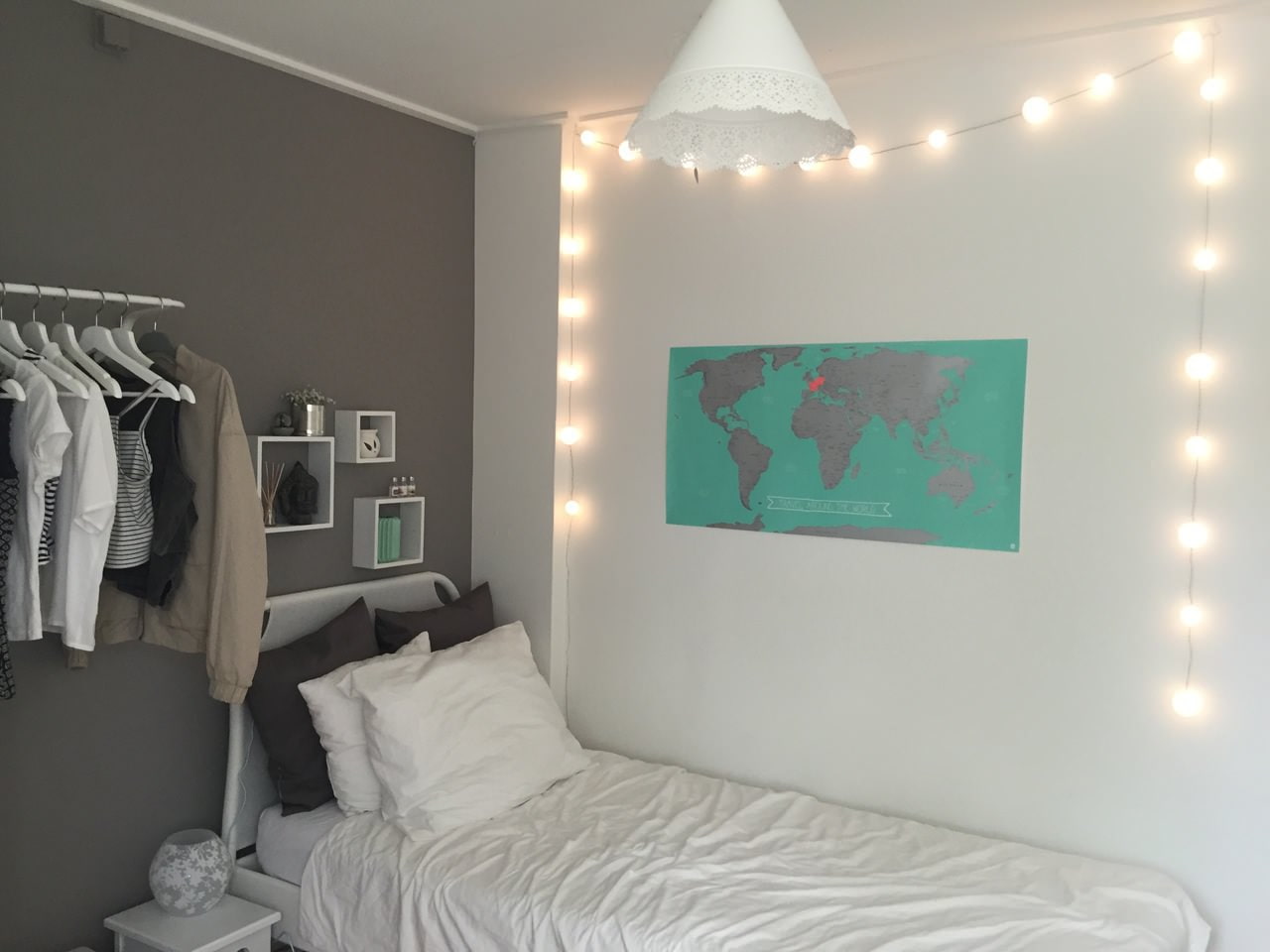 Draw a glowing heart, candle, Christmas tree, or star on the wall. To do this, mark the drawing with a pencil or chalk, and lay out the garland on it using tape, buttons or small studs. You can also use double-sided tape.