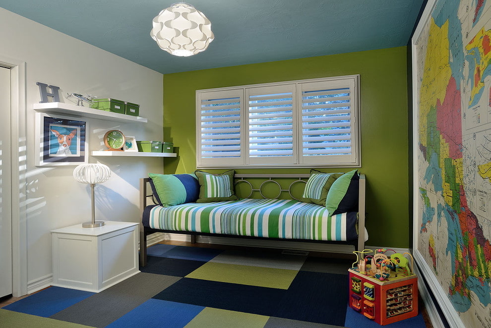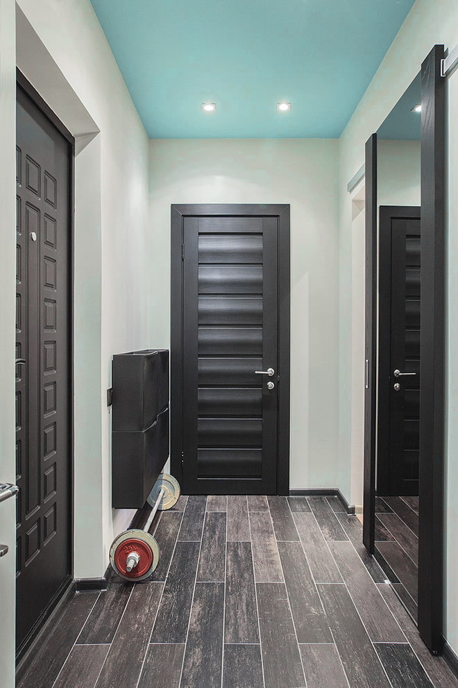 The combination of a blue ceiling with a green floor creates a balanced and quite harmonious design, and with a brown one you get a modern, expressive and sophisticated interior.