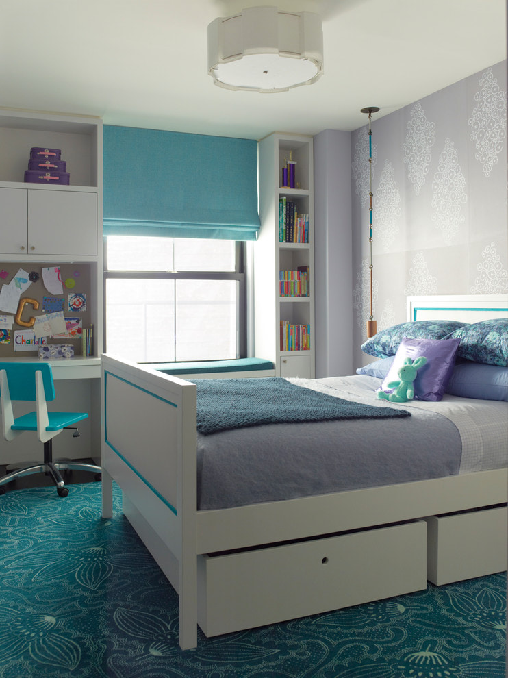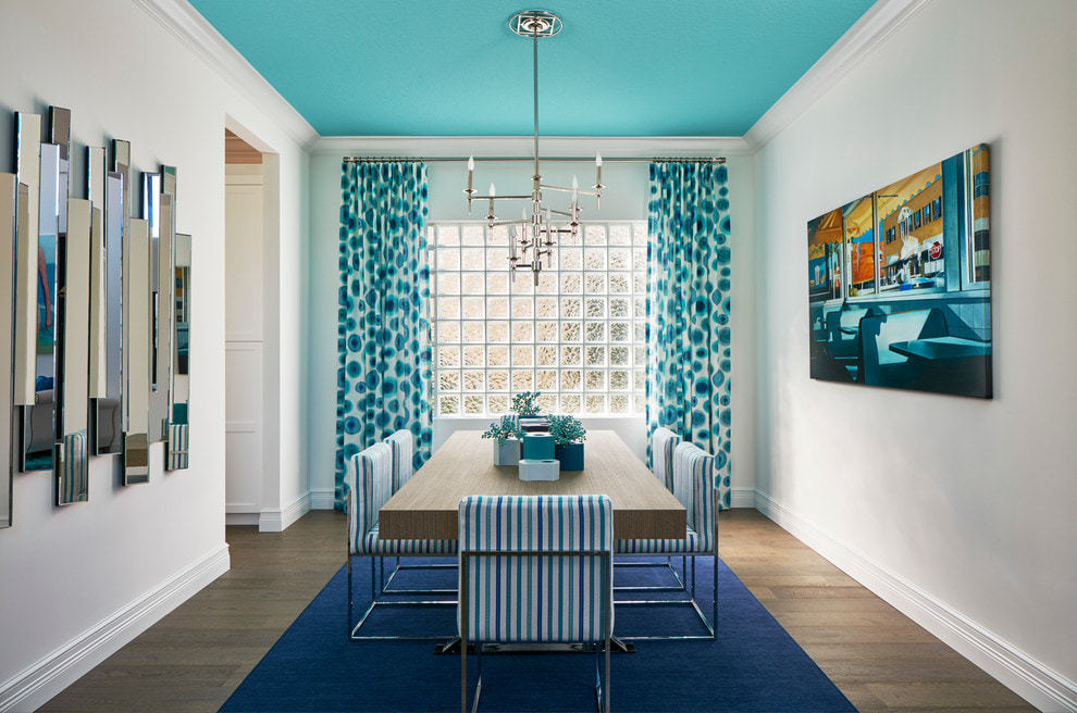 - Horizontal and vertical blue stripes will make the room look wider or taller.