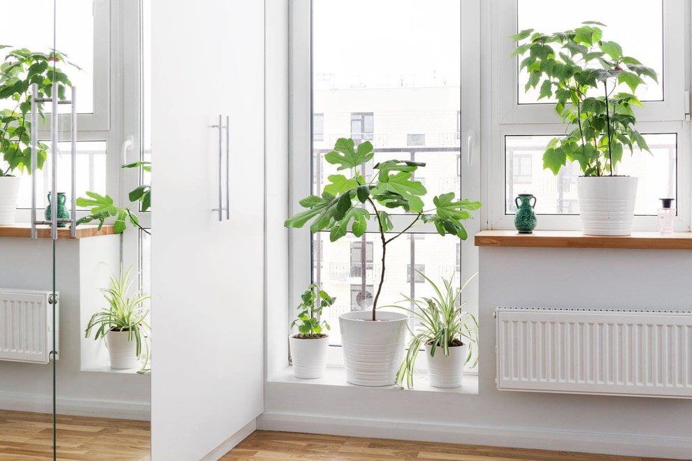 Eco-style connoisseurs, as well as amateurs indoor plants can beat not only the windowsill, but also the sill by placing several flower pots on it. The idea is suitable for those who rarely go to the balcony.
