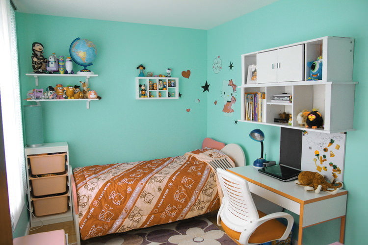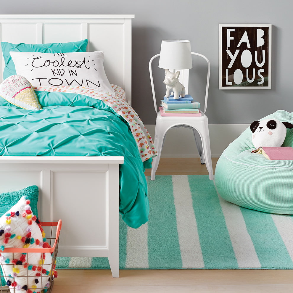 Turquoise walls are suitable for many room styles. Light-colored wallpaper will make the room more spacious. One of the walls can be decorated with photo wallpaper, such a design will become an interior decoration.