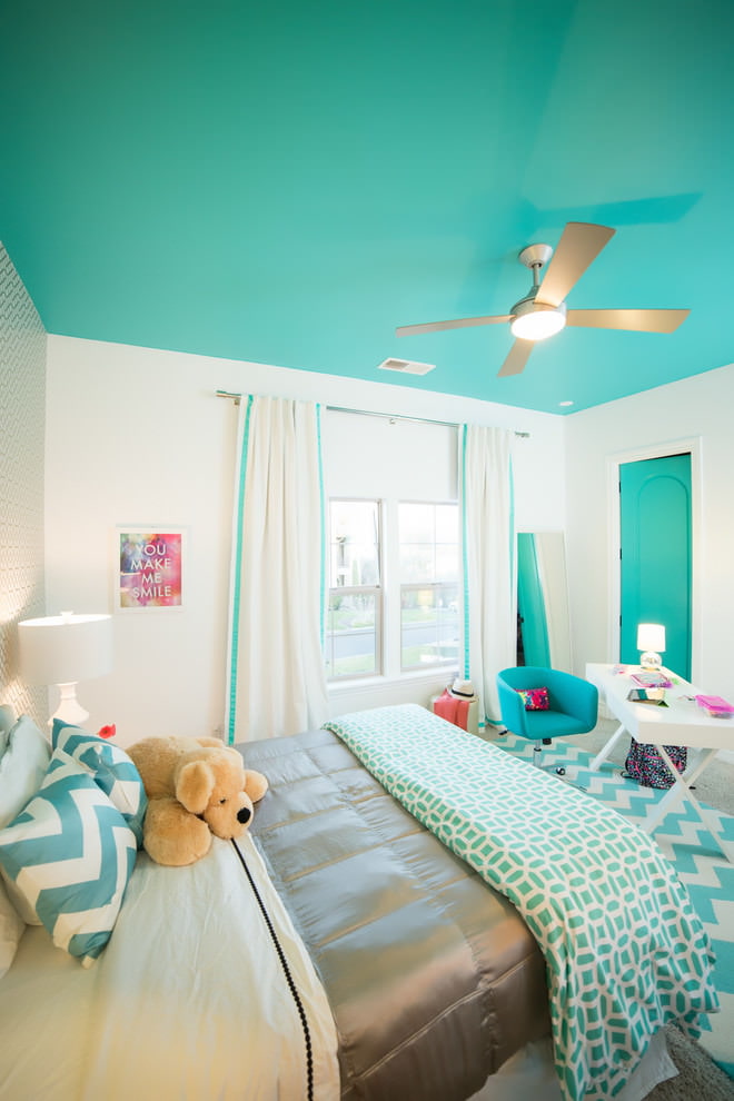 An interesting color that has many shades will decorate any interior. Light colors will refresh the room and will be associated with the sea breeze. Dirty turquoise paints look stylish, but not pretentious. Below are photo examples of the use of turquoise color in rooms for various functional purposes.