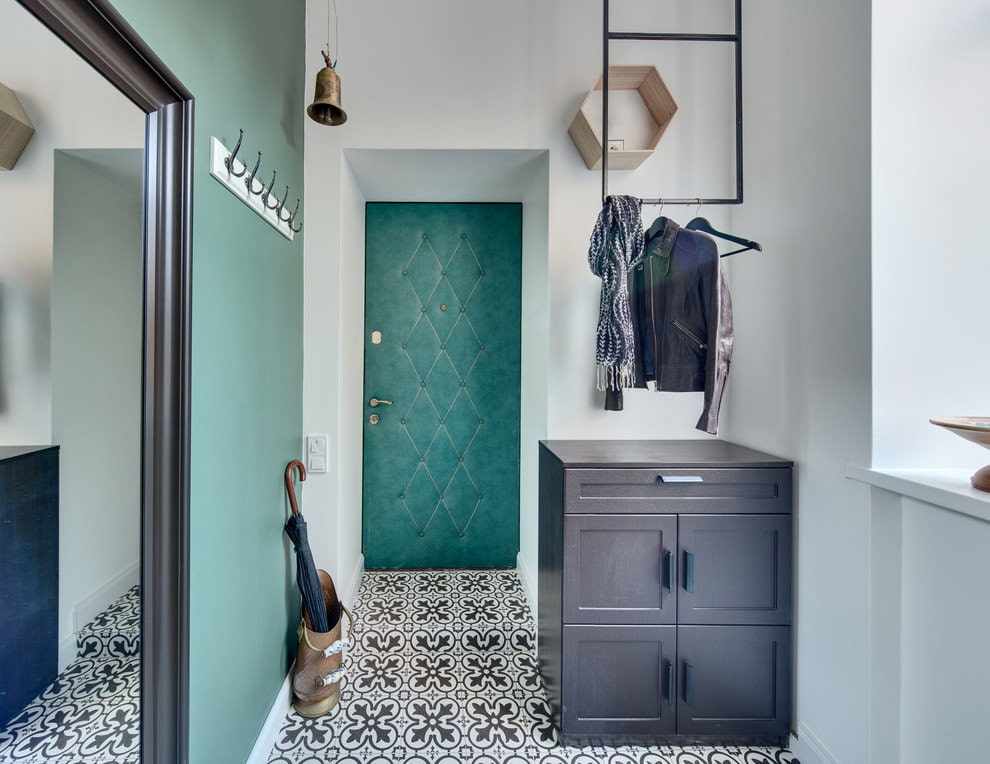 In closed hallways, the optimal solution would be a light turquoise finish, it will reflect artificial lighting and make the room brighter. In open space, deep color is acceptable. Depending on personal preferences, the interior can be made in both classic and modern style.
