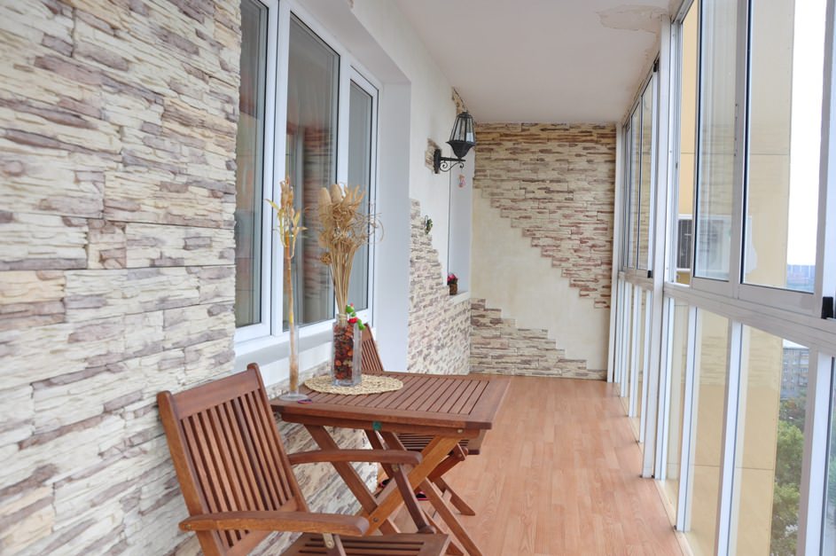 Decorative stone will allow you to turn a balcony or loggia into a cozy resting place and form a more thoughtful design.