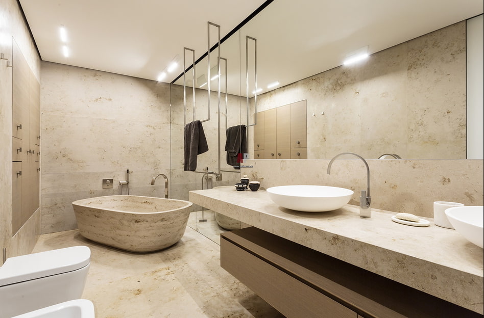 Due to its interesting texture and warm shades, travertine gives the room a special comfort.