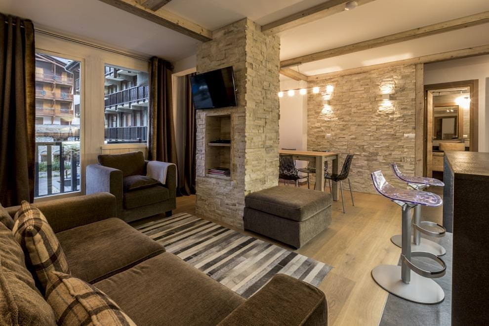 Stone finishing gives the space the proper character, creates a three-dimensional surface effect and, thanks to the competent tint solution, matched with the color of the walls, allows a smooth transition and harmonious balance.
