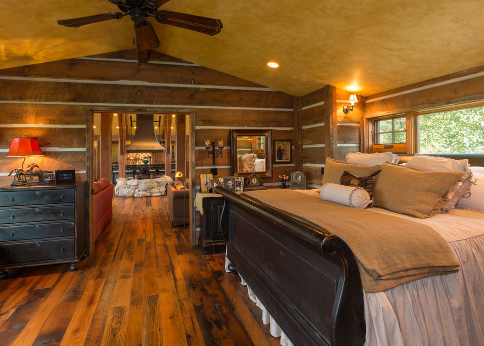 Impregnated with naturalness and freshness, only wood, heavy solid board, frayed doors and iron fittings, beams, a solid bed, a low sofa are used for decoration.