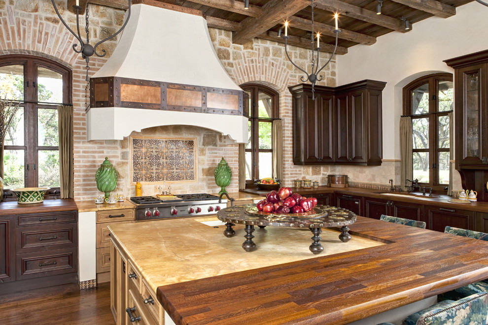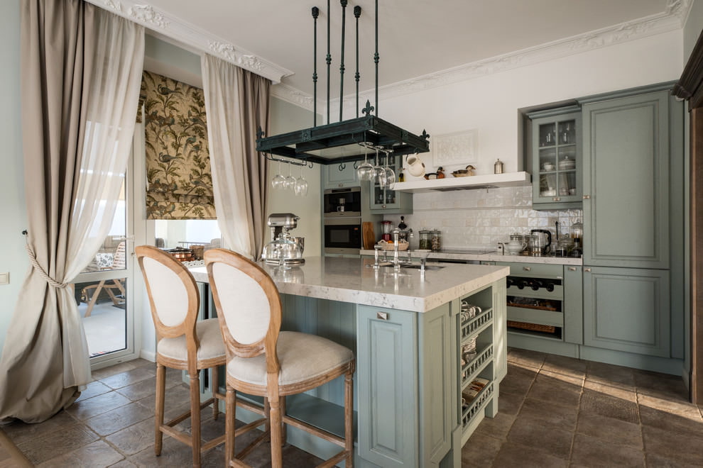 The Italian Mediterranean style kitchen has distinctive features that make urban cuisine look summer-like. It is important to use mosaic, majolica, ornamental tiles in green and blue tones when decorating an apron.