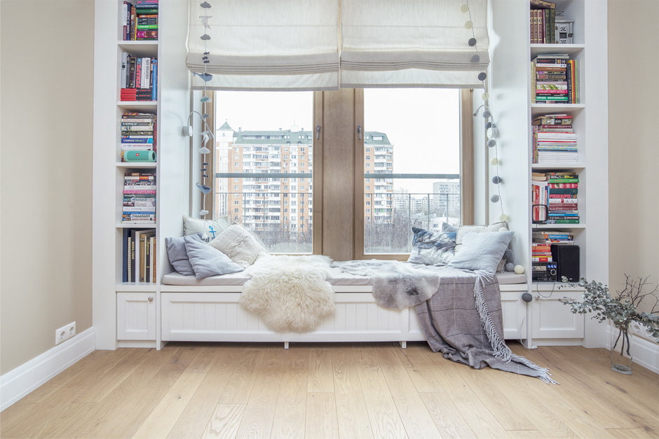 Happy owners of a good view from the window and wide slopes can arrange a place to relax in the apartment. If the size and material from which the window sill is made allows you to sit right on it with a book or a cup of coffee, even a few interior pillows will be enough.