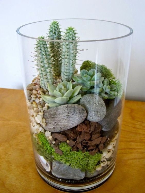 To create, you will need any container (aquarium, vase, jar or special greenhouse), soil, coffee grounds to retain moisture, small shoots and decorative elements (pebbles, figures, shells).