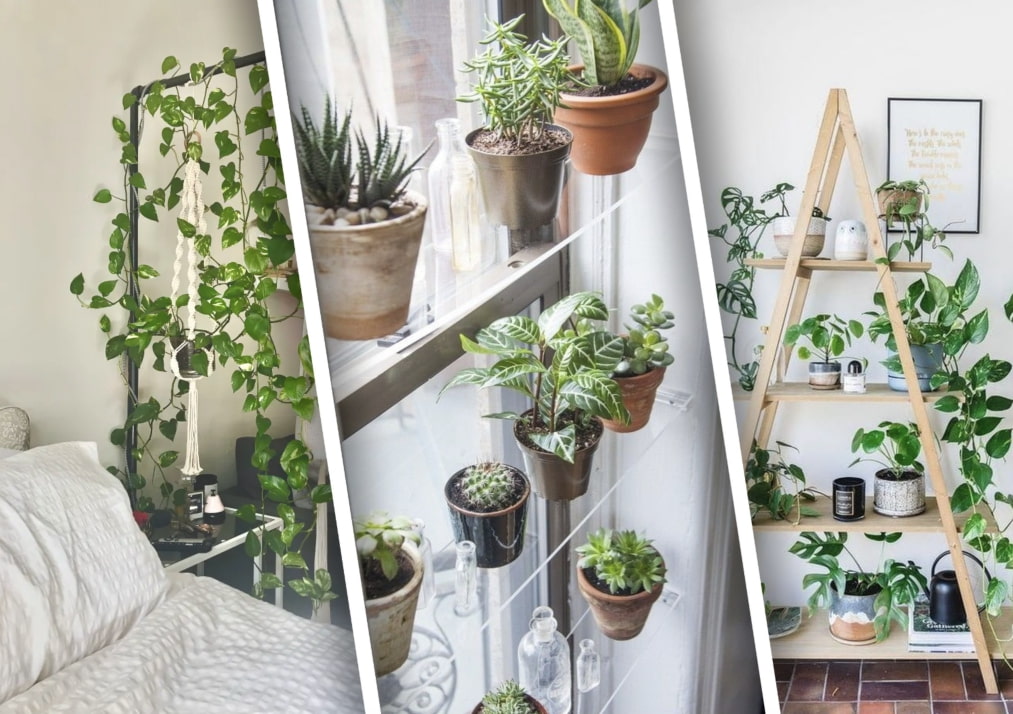 And how to place several hanging pots at once? The curtain rod comes to the rescue again.