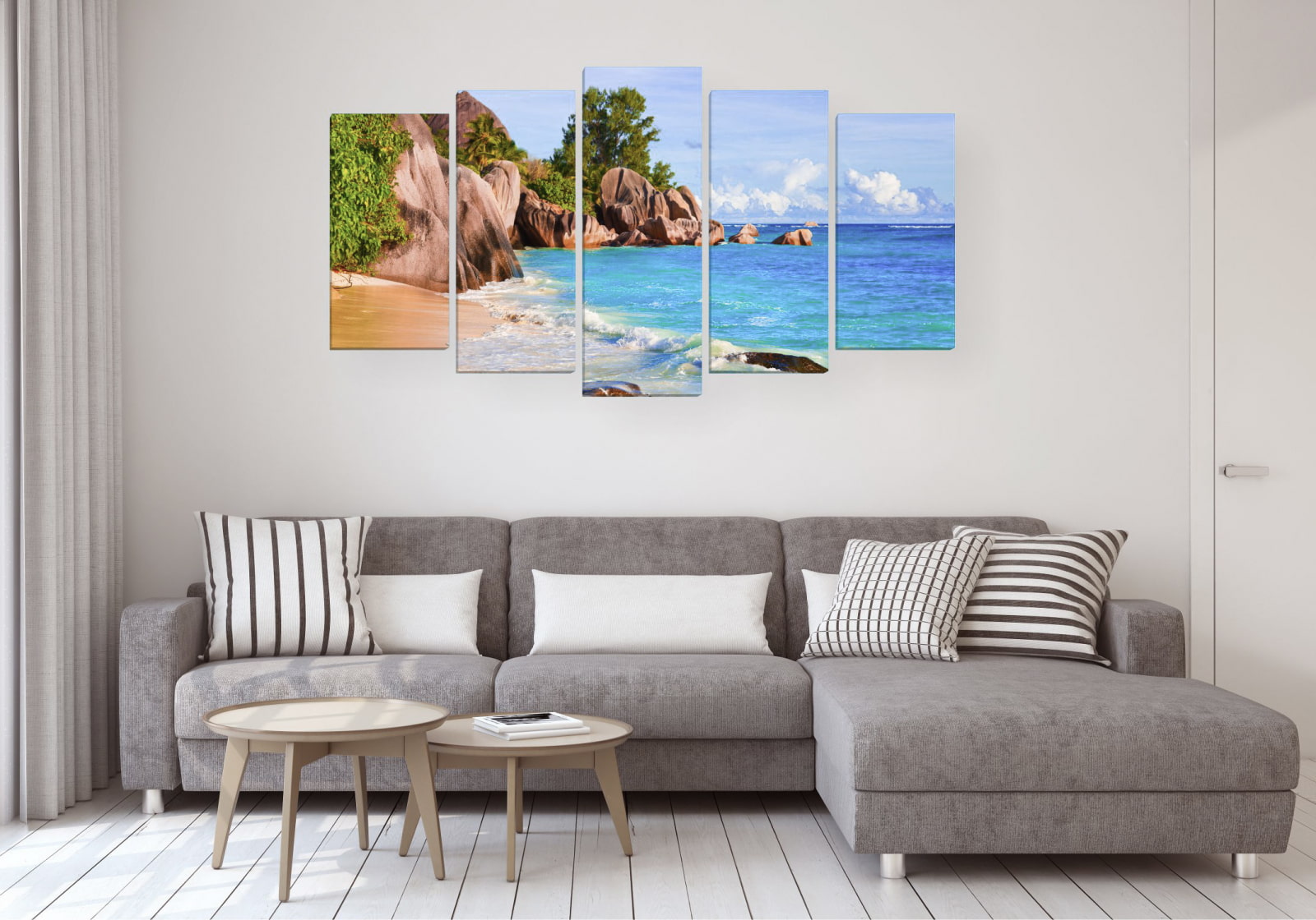 Depending on the material from which the walls are made, you will need either a drill or a hammer drill. Before you hang a modular picture, we advise you to collect its fragments on the floor and measure the distance between them.