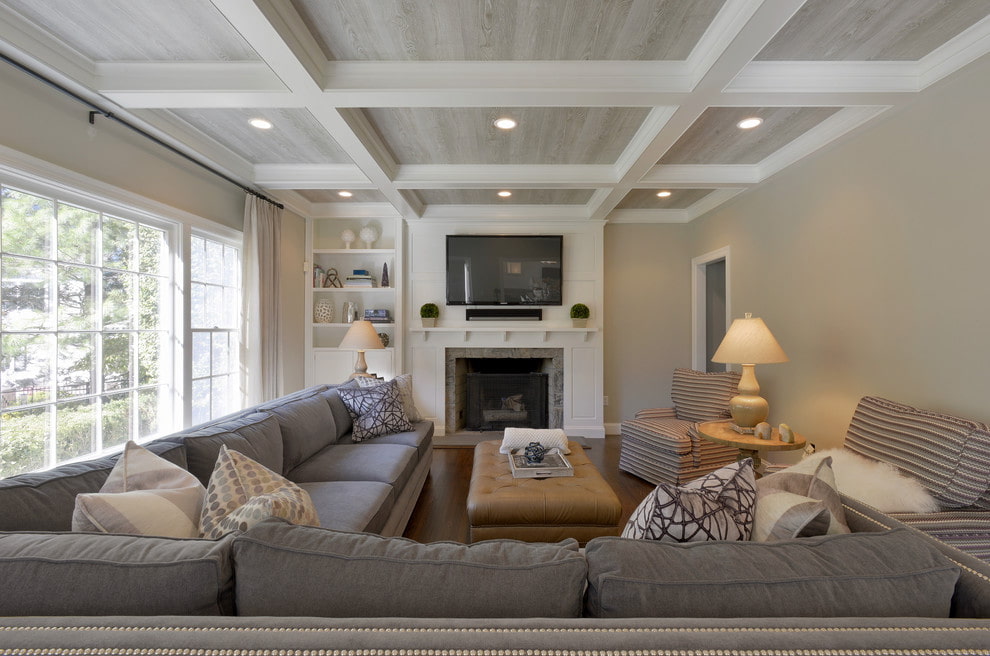 The coffered ceiling visually expands the space and adds architecture and airiness to it. A living room with such a decor takes on a more complete, original and stylistically competent look.