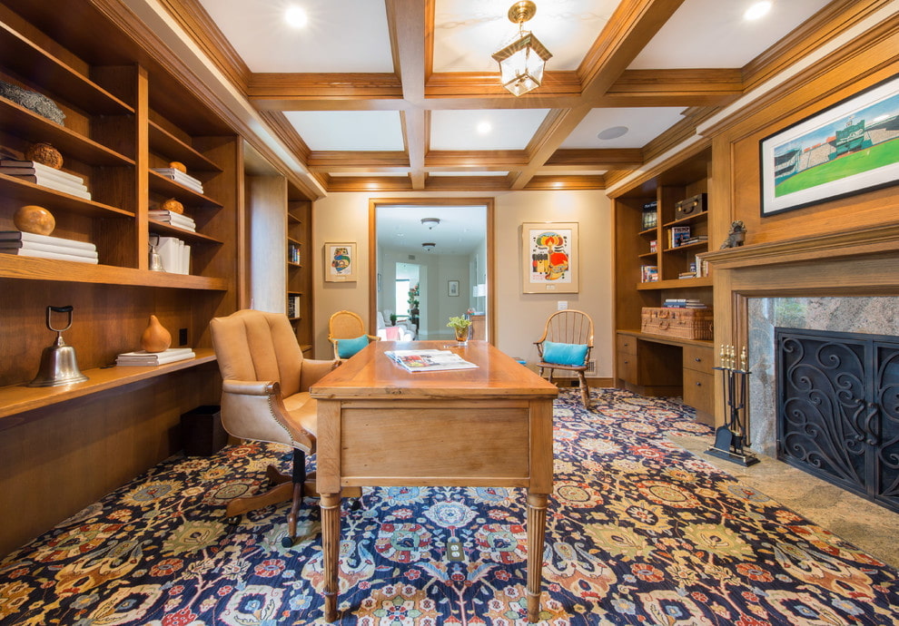 Coffered ceilings made of wood will visually make the office much larger and higher and create an atmosphere of solidity and representativeness in it.