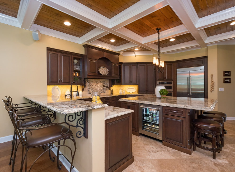 The coffered ceiling allows you to competently complement any room and add notes of luxury and wealth to it. With the help of such a multifaceted decor, you can decorate any rooms, give them originality and special style, and create an original design.