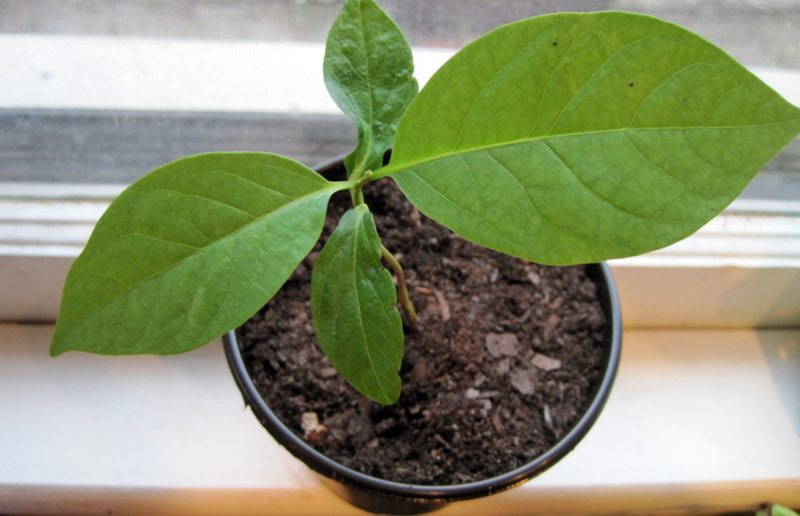 After preparing the seeds and soaking them in a solution of potassium permanganate, they are placed in a container with loose soil from a garden mixture and sand. Then the container is covered with foil and the emergence of seedlings is waited for 1-1.5 months. A pick is necessary if several plants have sprung up in one pot.