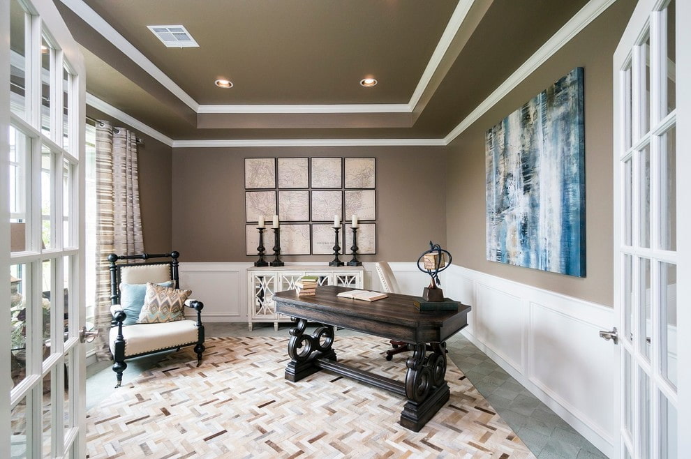 Stylish color combinations of walls and brown ceiling