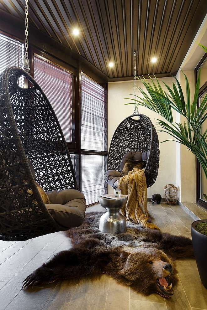 Brown slatted or plastic structures will give the loggia a more harmonious and integral look, add originality.