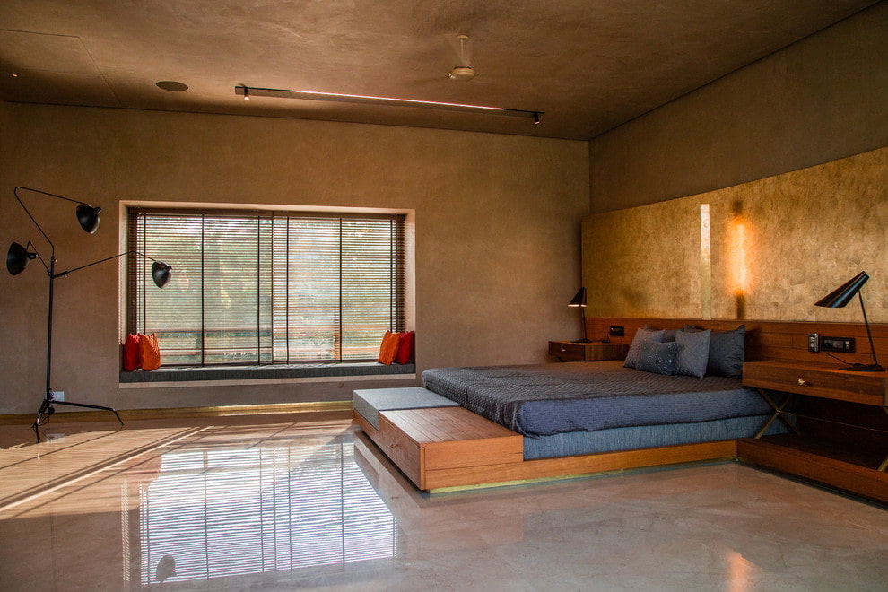 In the photo there is a brown satin stretch canvas in the interior of the bedroom.