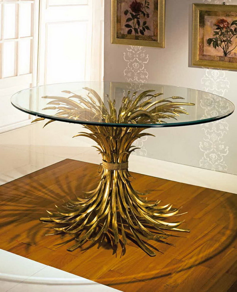 With the help of artistic painting with a patina of bronze, green, gold or silver, it turns out to give the table a special exquisite aesthetics.