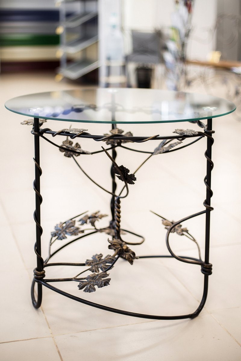 Forged coffee table near the sofa will become the accent of the living room. It is already good in itself, but allows for addition in the form of a rack, shelf, console in another part of the room.