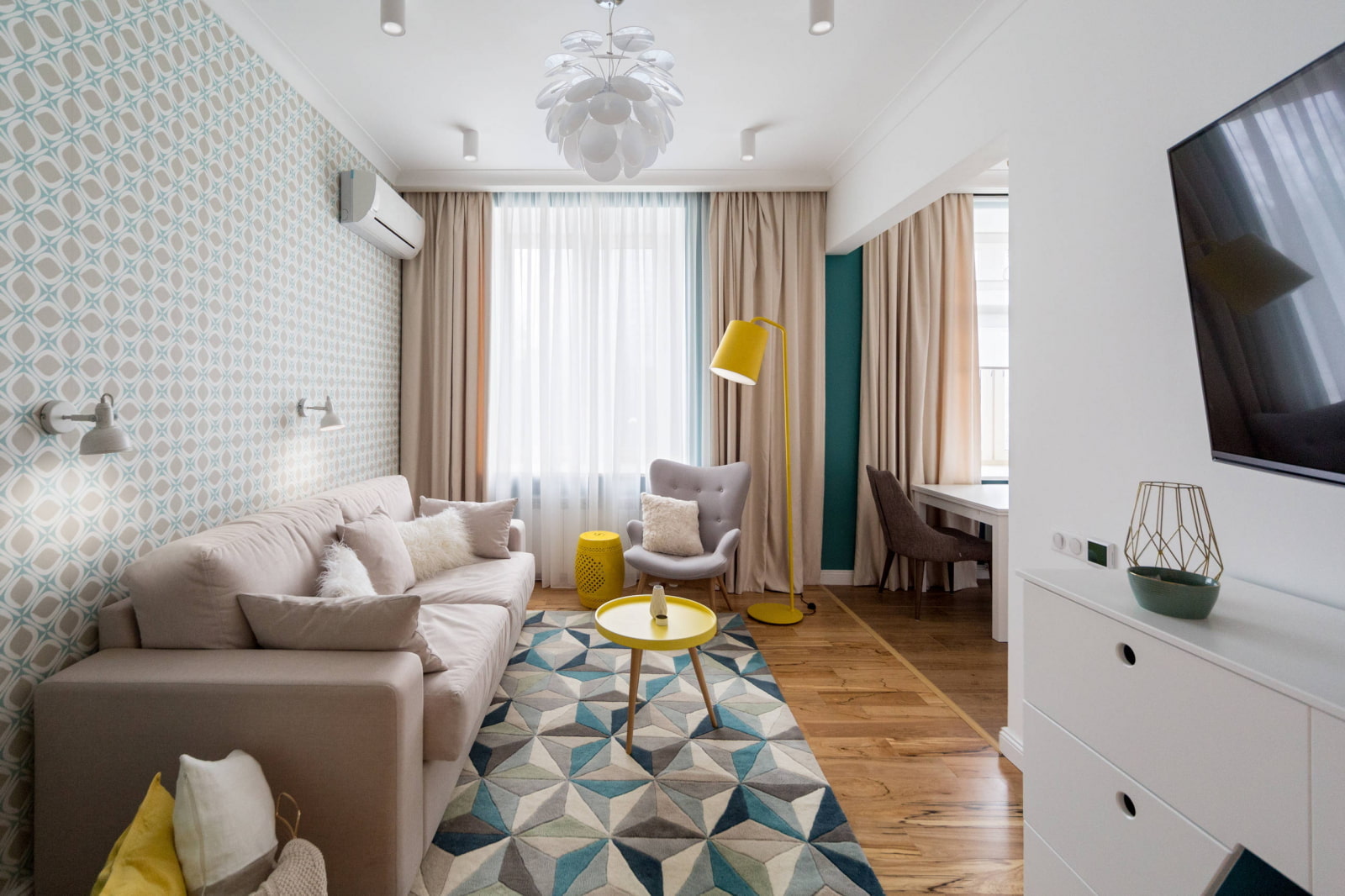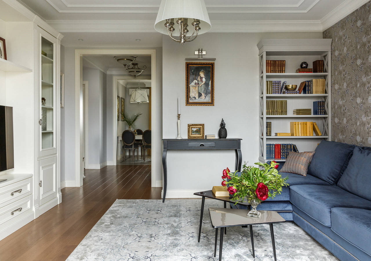 - How is it located? Carpets in the living room interior should fit a sofa, armchairs, and a coffee table. Therefore, the size of the track depends on the layout.