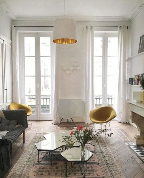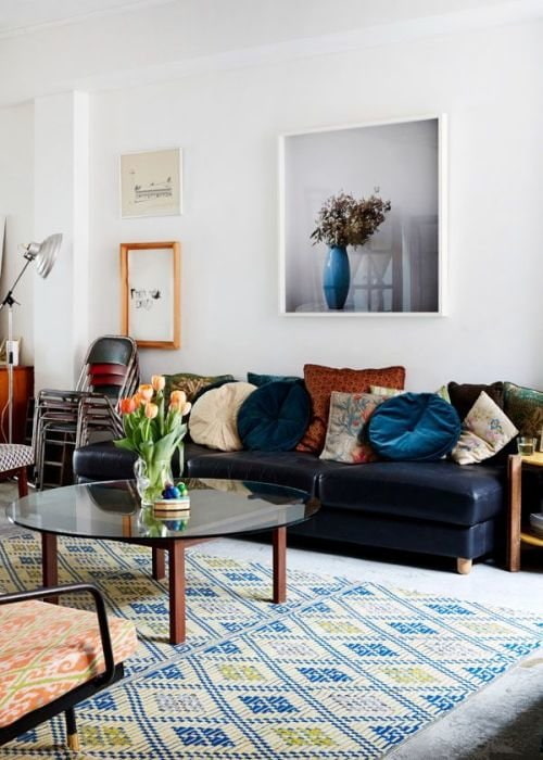 - Slide the carpet 15-20 cm under the furniture to avoid the effect of dividing the space.