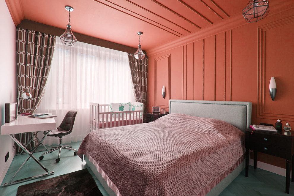 Red is bright and passionate, but at the same time bold and risky. For the decoration of the bedroom, you can choose a combination of two colors, with a calmer shade. A pure scarlet shade can cause excitement and irritation, for the sleeping area it is better to choose deep dark shades, such as crimson, dark red, ruby.