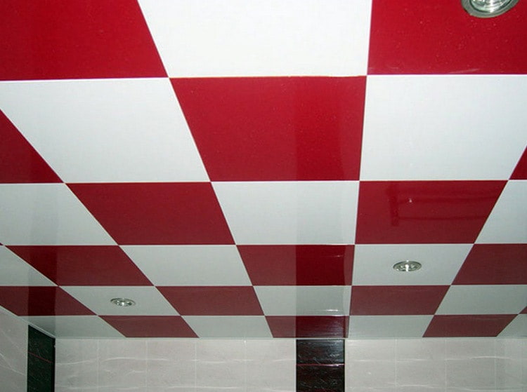 Ceilings made of PVC panels and slats are assembled according to the mosaic principle. PVC panels are good for bath and toilet, they are not afraid of moisture and will not rust over time.