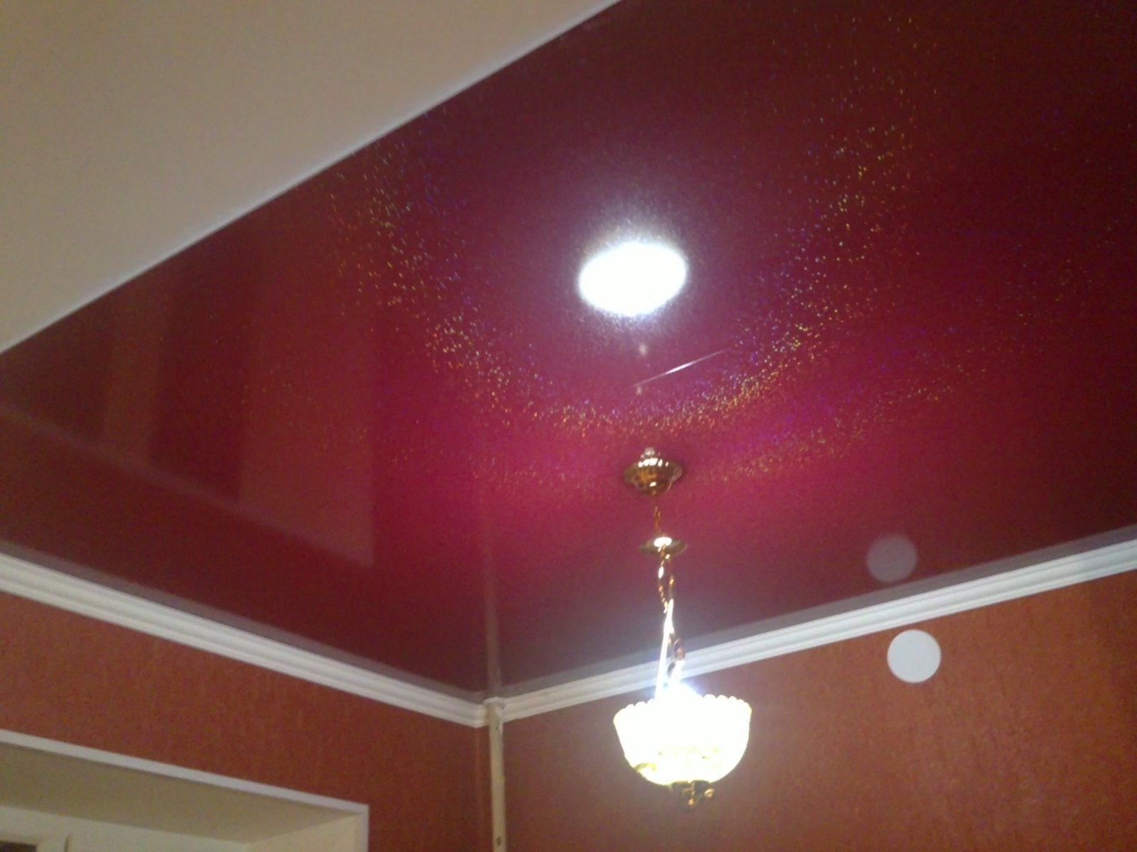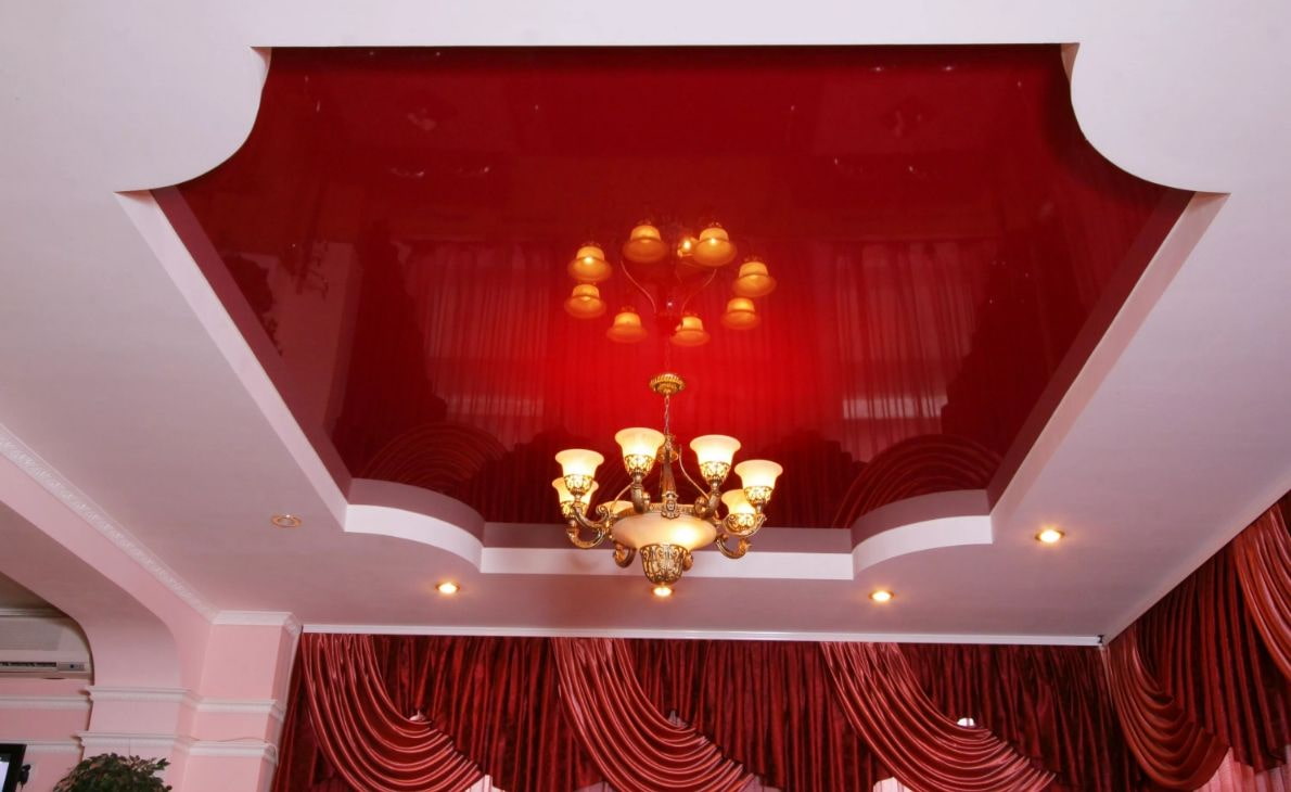 The good thing about a painted ceiling is that you can find the perfect shade of red that you want. Painting is performed on a pre-prepared flat surface. The effect after application can be glossy and matte.