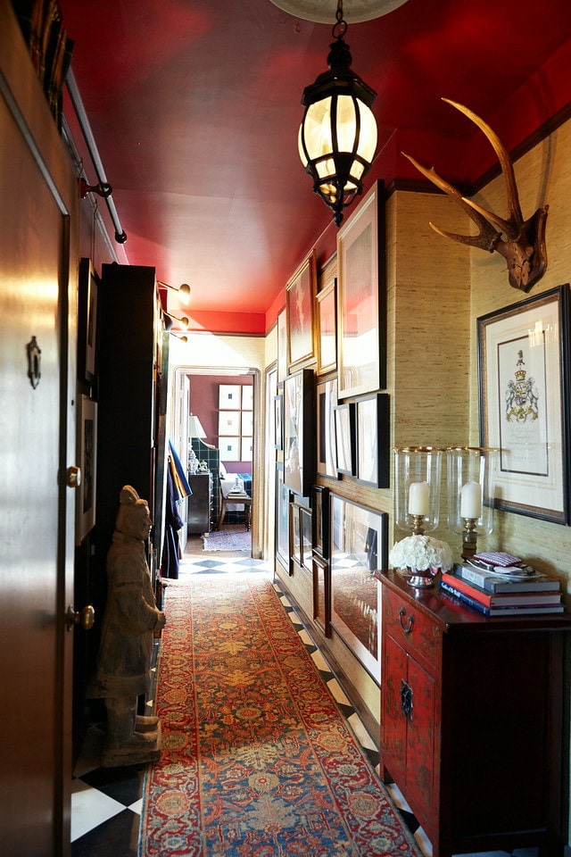 Red will look good in open hallways or corridors with plenty of natural light. A mirrored surface will help increase the space.