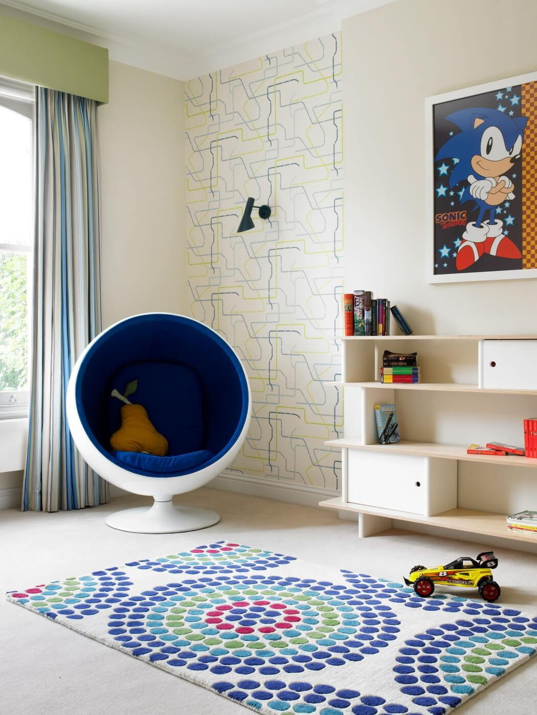The second aspect influencing the choice of color - the functional purpose of the space. For children, in most cases, they choose a bright palette - and the upholstery is not necessarily monochromatic, options with prints are acceptable.