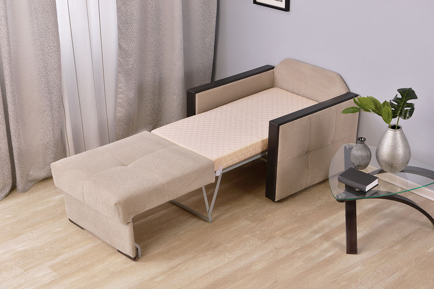 - A chair-bed for daily use at home, preferably equipped with an orthopedic mattress with high-quality filler.