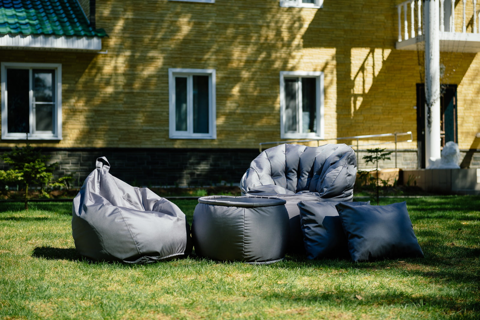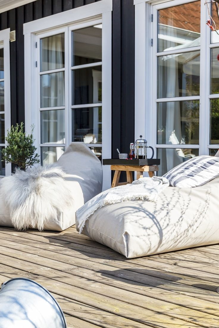 Place a bright beanbag chair near the house on verandato create a wonderful place for outdoor recreation. For tanning, drops or pillows are best suited to lie on.