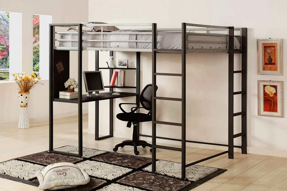 - Metal the loft bed has a stable and reliable connection. For the production of loft frames, carbon (tool) steel is used, giving it the desired shape. Painting the frame with anticorrosive compounds increases the service life of metal furniture and retains its attractive appearance for a long time.