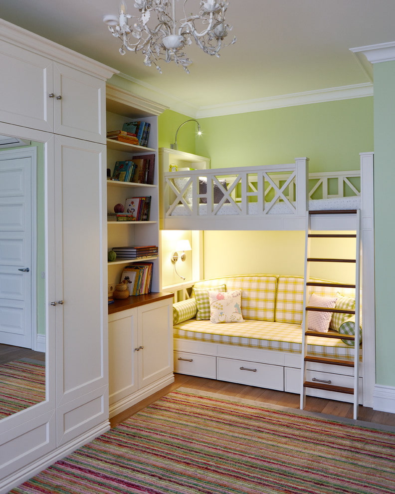 In a nursery for two or in student housing, it makes sense to use the lower floor for a second bed.
