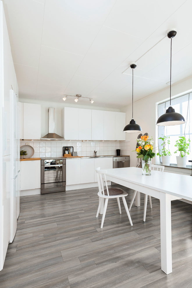 In a room where they constantly cook, the floor often suffers, but quartz vinyl will withstand any tests: dropping dishes, spilled water and all kinds of pollution.