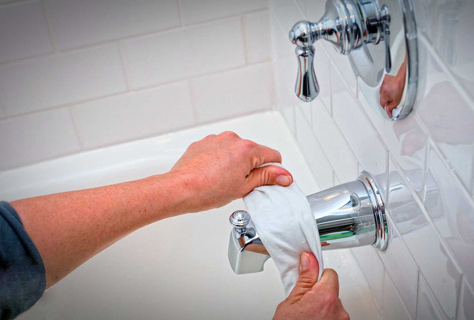 Plaque on faucets and pipes spoils the whole impression of the bathroom, even if the tiles and plumbing are shiny. To get rid of dull plaque will help a cloth napkin slightly moistened with oil.