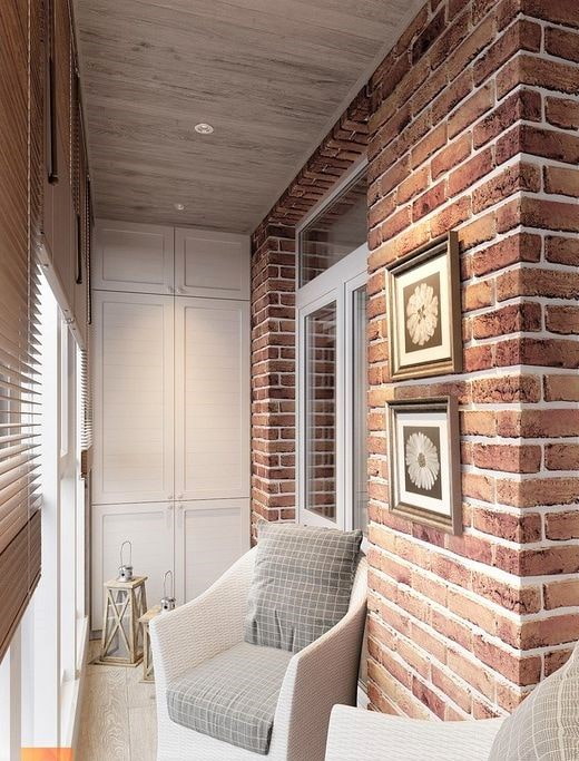 Surface finishing on a balcony or loggia should be practical and moisture resistant. High-end laminated material is ideal for walls and ceilings.