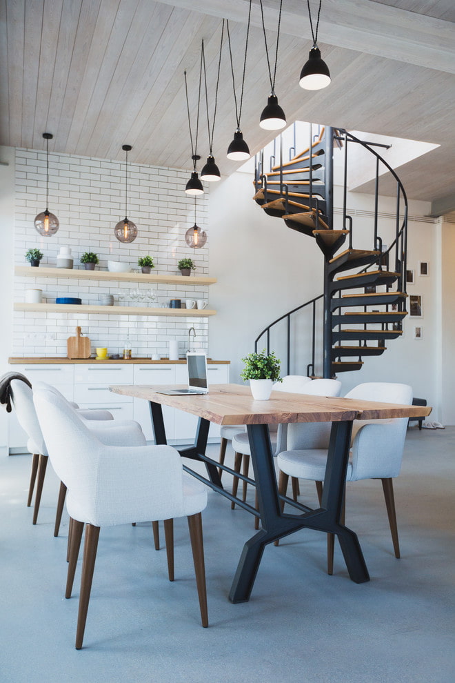 A loft-style interior is a combination of rough industrial finishing materials such as brick, concrete, paint, plaster, wood, metal. However, the wooden elements should look rough, aged or with a burnt-board effect. Often in modern apartments, laminate is used as a ceiling cladding, which corresponds to the loft style, while being practical and economical.