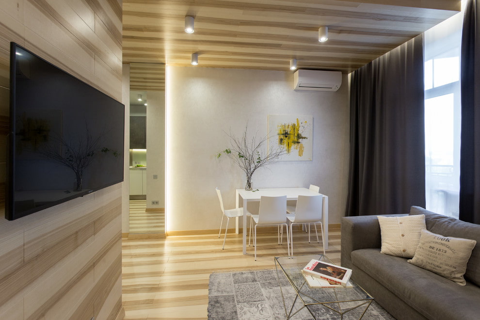 A light wood accent on the ceiling and other surfaces will add warmth without burdening the interior with color. So, bleached oak is ideal for any living space, it will look discreet and versatile.
